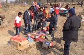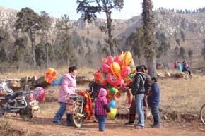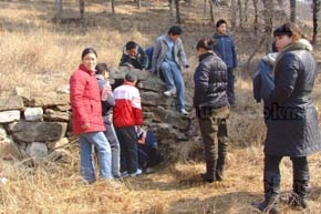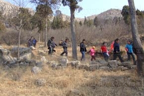 刚出崮尚,就看到十里八乡三五成群赶会的人们,从各个方向涌向昌平山,并传来阵阵的鞭炮声。很早以前就有九顶七泉昌平山之说,是个山水相依之处,这里基本上是个荒山,一些柏树大部分都是1958年栽的,50年没有绿化了。山凹处有一座玉皇庙,始建于明朝中后期,是一座岩泉飞瀑石洞玲珑的胜境地。每年烧香的人们络绎不绝。阵阵的鞭炮声打破了昌平山的幽静。