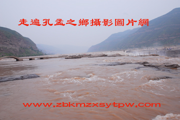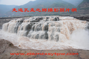 山西黄河壶口瀑布,位于山西省吉县城西 45公里,距临汾市165公里处的晋陕峡谷黄河河床中,已成为世界上最大的黄色瀑布,因其气势雄浑而享誉中外。 壶口瀑布,是由于黄河流至壶口一带,两岸苍山夹峙,把黄河水约束在狭窄的黄河峡谷中,河水聚拢,收束为一股,奔腾呼啸,跃入深潭,溅起浪涛翻滚,形似巨壶内黄水沸腾。巨大的浪涛,在形成的落差注入谷底后,激起一团团水雾烟云,景色分外奇丽。站在河边观瀑,游人莫不唱起“风在吼,马在叫,黄河在咆哮”这威武雄壮的歌声。 壶口瀑布的宽度随季节变化而变化。通常情况是,宽度在 30米左右,汛期可扩展到50米上下,瀑布落差在20-30米之间。 瀑布下方,在连接山西、陕西的七郎窝大桥,瀑布与大桥相映,形成一道诱人景观。 近年来,壶口瀑布已成为中华壮士“飞黄”的圣地,继柯受良驾汽车飞黄成功后,朱朝晖又成功地驾驶摩托车在这里飞越黄河。 关于壶口瀑布,民间有众多传说。其中流传最广的,是禹凿孟门。相传尧舜时期,黄河水流到壶口,因受孟门山堵阻,平阳一带常遭严重水灾。尧派鲧治水未成,禹去治水。禹仔细了解了壶口至龙门的地形,决定采取疏通河道的方法来治理洪水。孟门山在龙门之北,治水便从孟门山开始。
